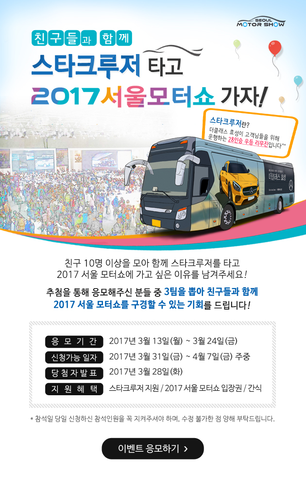 친구들과 스타크루저 타고 2017 서울모터쇼 가자!